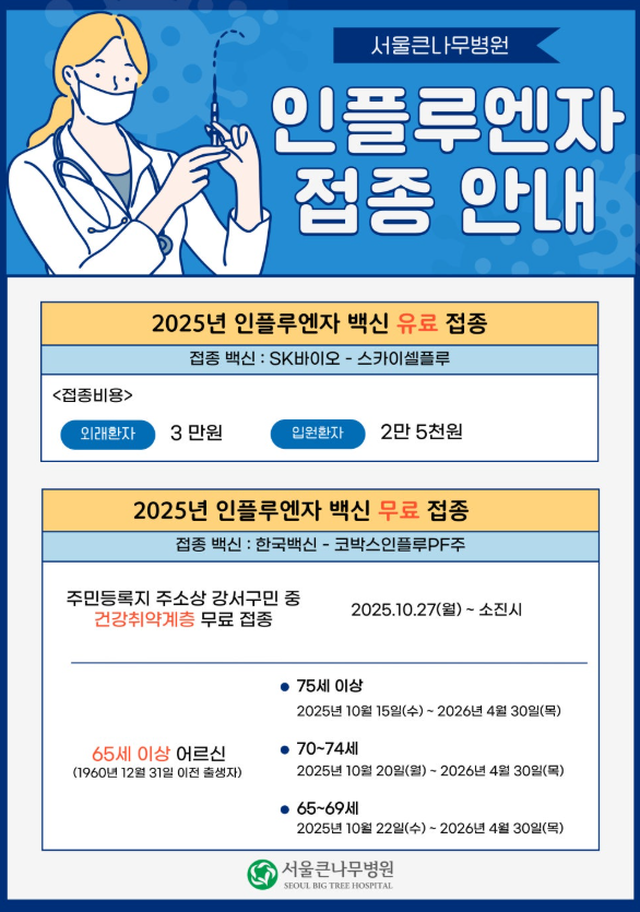 서울큰나무병원 인플루엔자 접종 안내(독감예방접종시행)