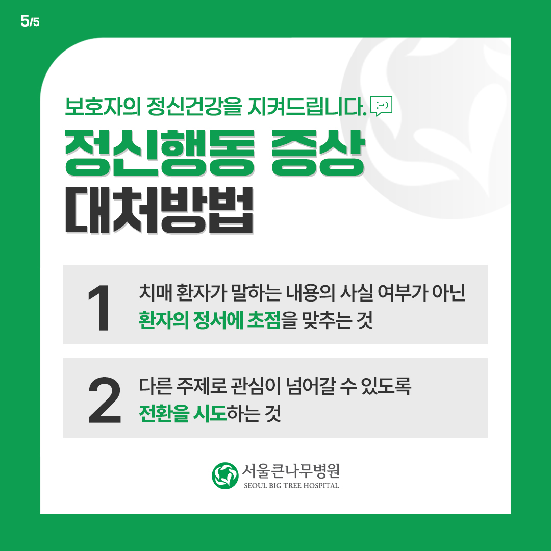 - 치매 증상의 악화 인자를 개선하고, 예방 인자를 권장하여 치료 효과를 높일 수 있습니다.