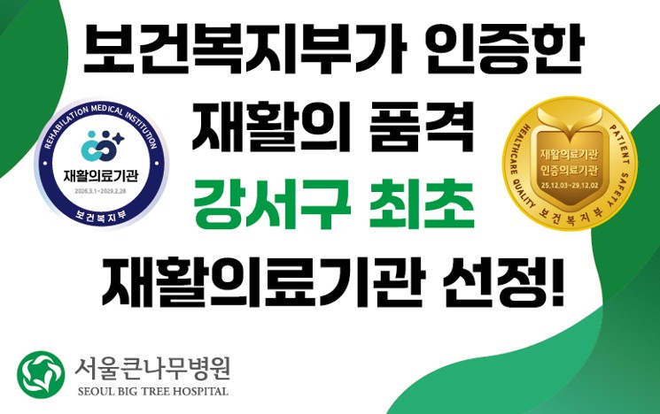 서울큰나무병원은 보건복지부가 주관하는 2주기 재활의료기관 인증을 공식 획득하였음을 안내드립니다. 본 인증은 재활의료 서비스의 전문성, 환자 안전관리 체계, 의료 질 향상 활동, 치료 환경 및 인력 운영 전반에 대해 엄격한 기준과 현장 평가를 거쳐 부여되는 국가 공식 인증입니다. 서울큰나무병원은 환자 중심의 재활치료 시스템과 체계적인 의료 운영을 통해 안전하고 신뢰할 수 있는 재활의료기관으로서의 기준을 충실히 이행하고 있음을 공인받았습니다. *인증 내용* 인증명 : 보건복지부 2주기 재활의료기관 인증 인증기간 : 2025년 12월 3일 ~ 2029년 12월 2일 앞으로도 서울큰나무병원은 환자의 빠른 회복과 삶의 질 향상을 최우선으로 생각하며, 보다 전문적이고 안전한 재활의료 서비스를 제공하기 위해 지속적으로 노력하겠습니다. 감사합니다.
