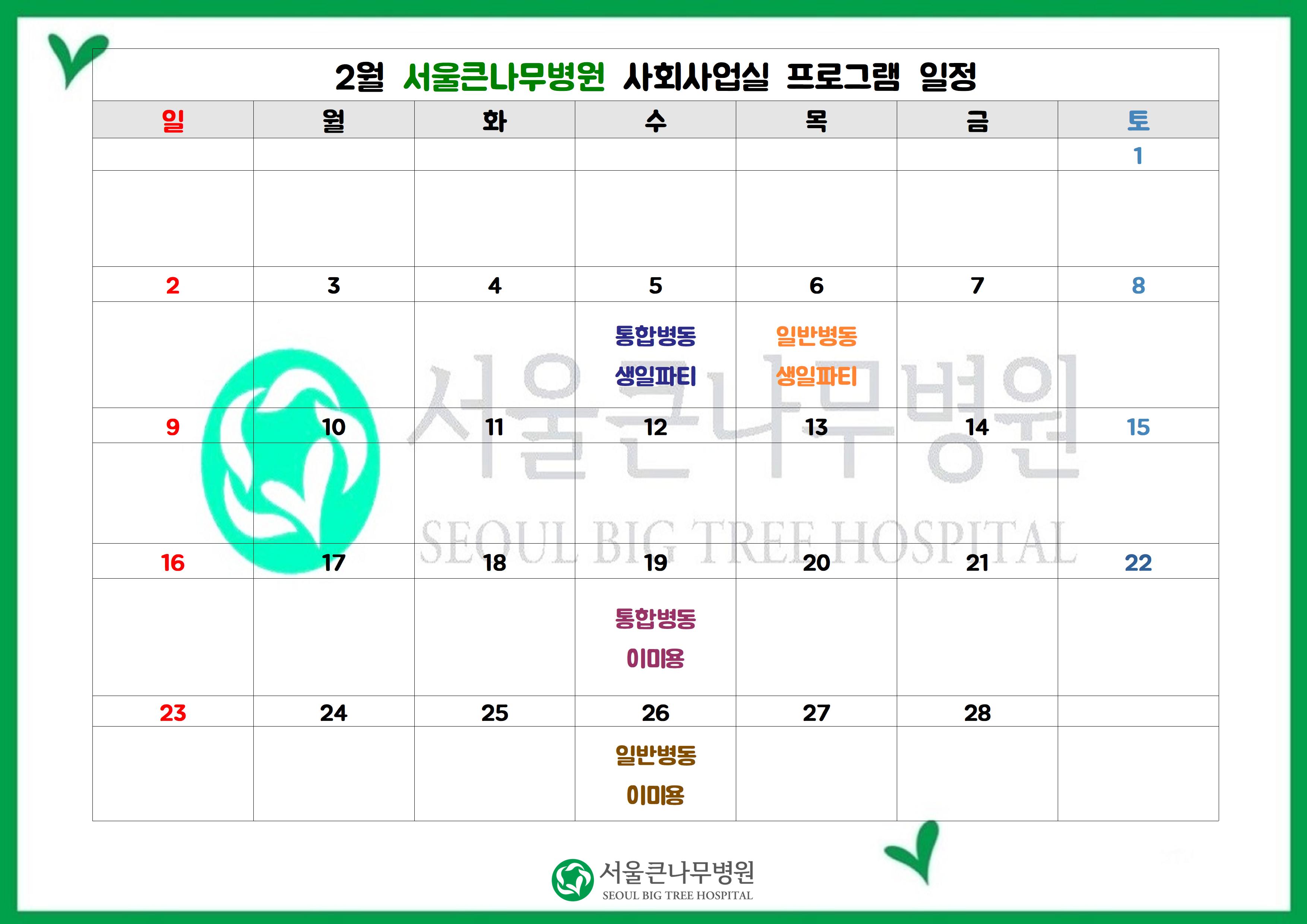 2월 [사회사업실 프로그램] 일정표