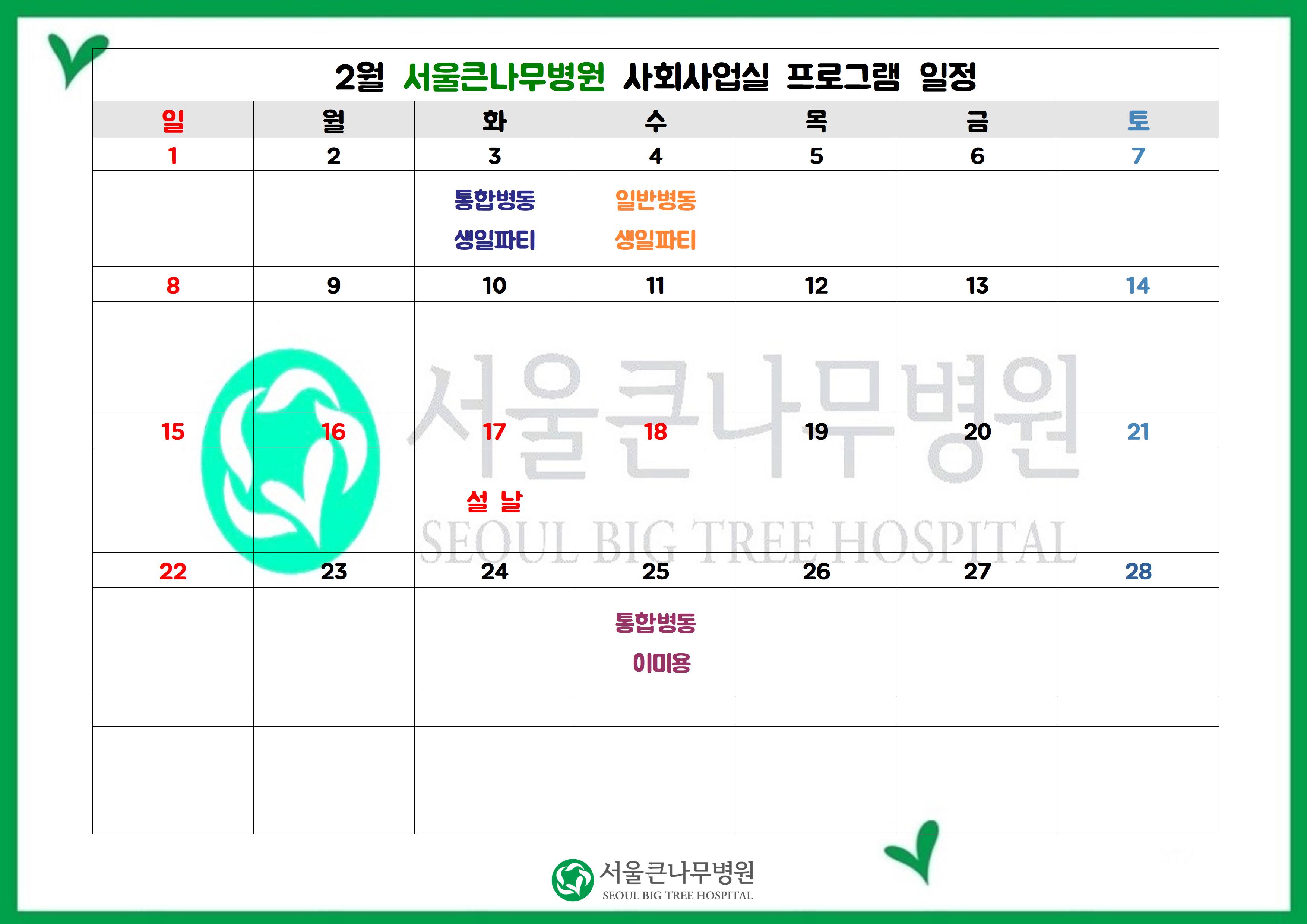 2월 사회사업실 프로그램 일정표